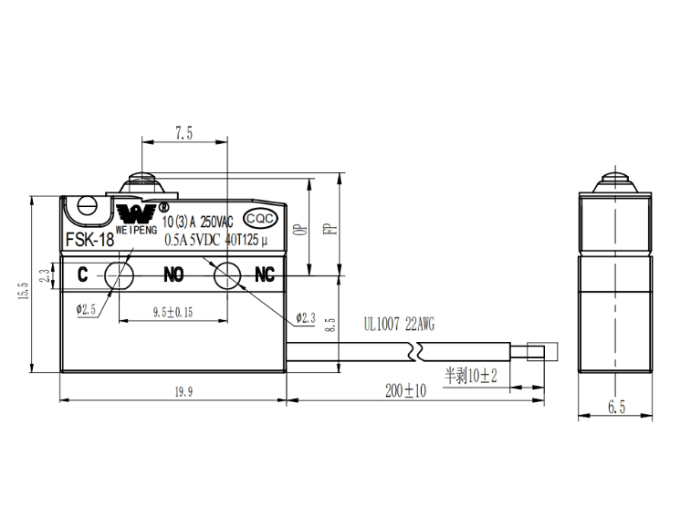 जलरोधक मायक्रो स्विचपारameter(विशिष्टता)